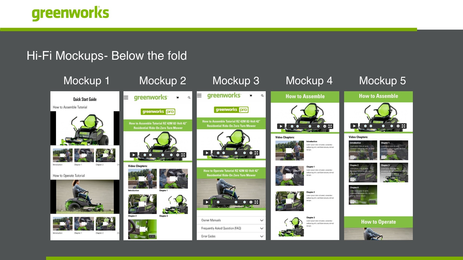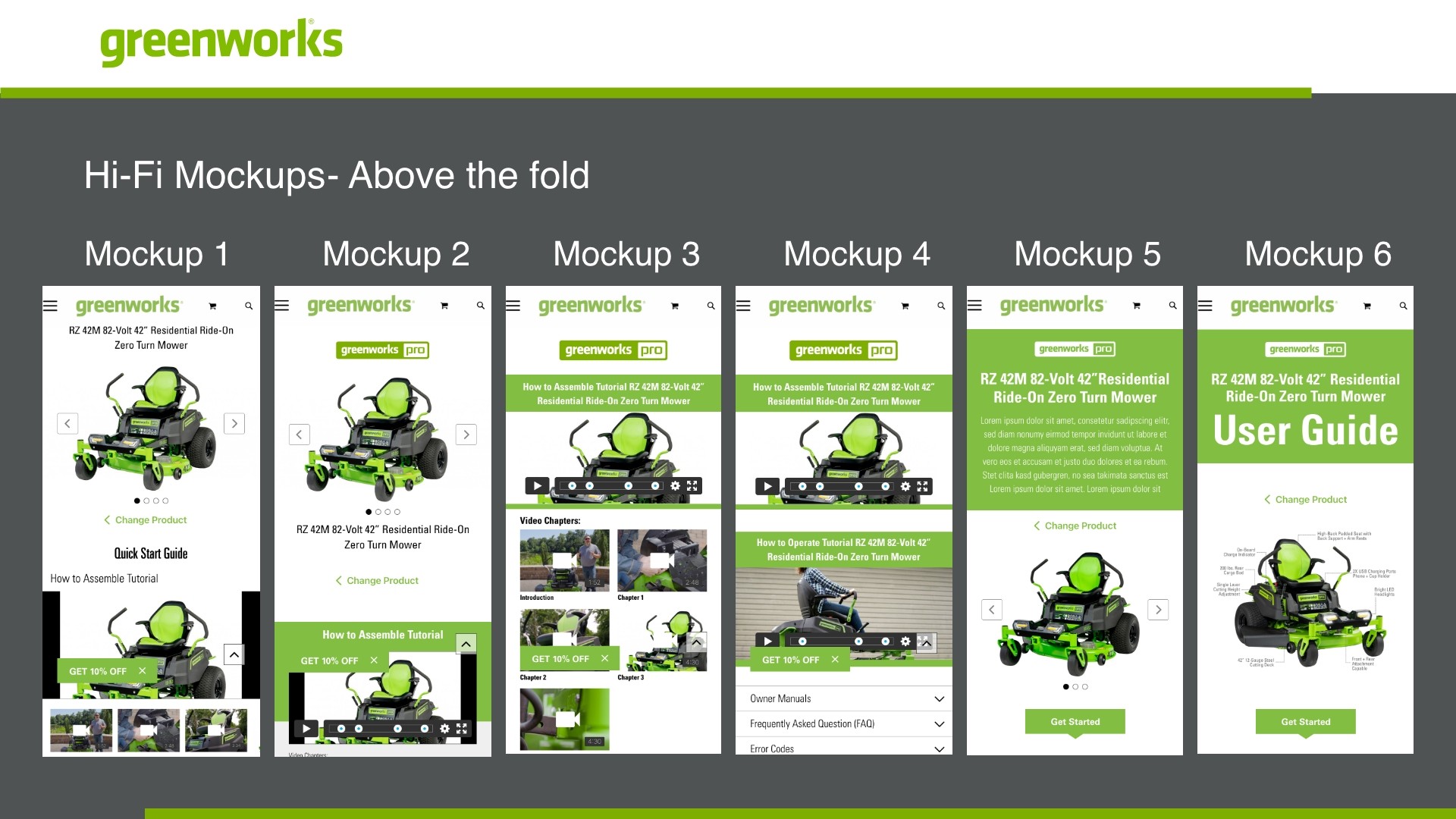 • All info should be as generic as possible and product category focused (ie zero turn mowers).